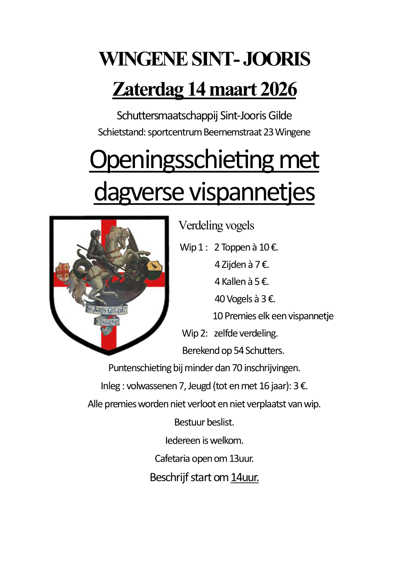 - Zaterdag 14 maart 2026 14u: openingsschieting